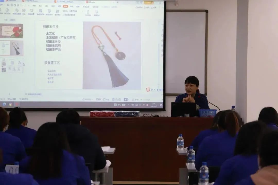 活動中,老師為大家講解了中國的玉文化,重點講述了和田玉的由來、產(chǎn)地和分類,使大家了解了玉石不僅見證了社會發(fā)展,更是一種語言符號,是文化傳播的重要媒介。