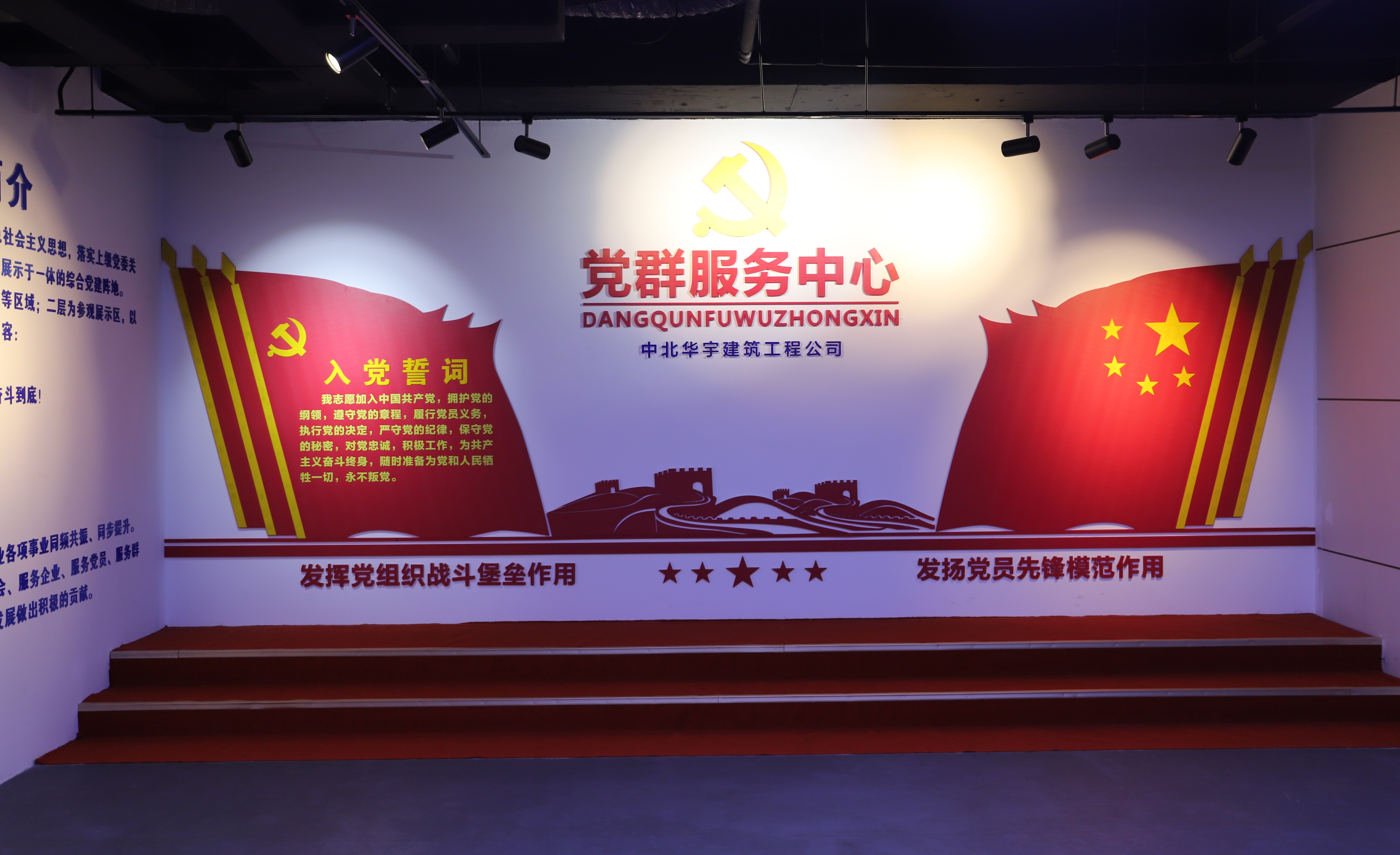 為全面貫徹落實(shí)黨的十九大精神,銘記光輝歷史,傳播紅色文化,回報社會各界的支持與厚愛,2018年6月,中北華宇建筑工程公司投資建成了黨群服務(wù)中心。